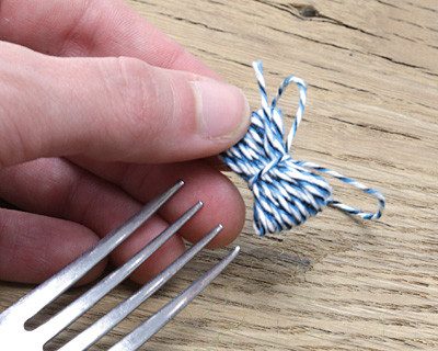 Got to your kitchen and get a fork and pick the color(s) of twine you would like to use.