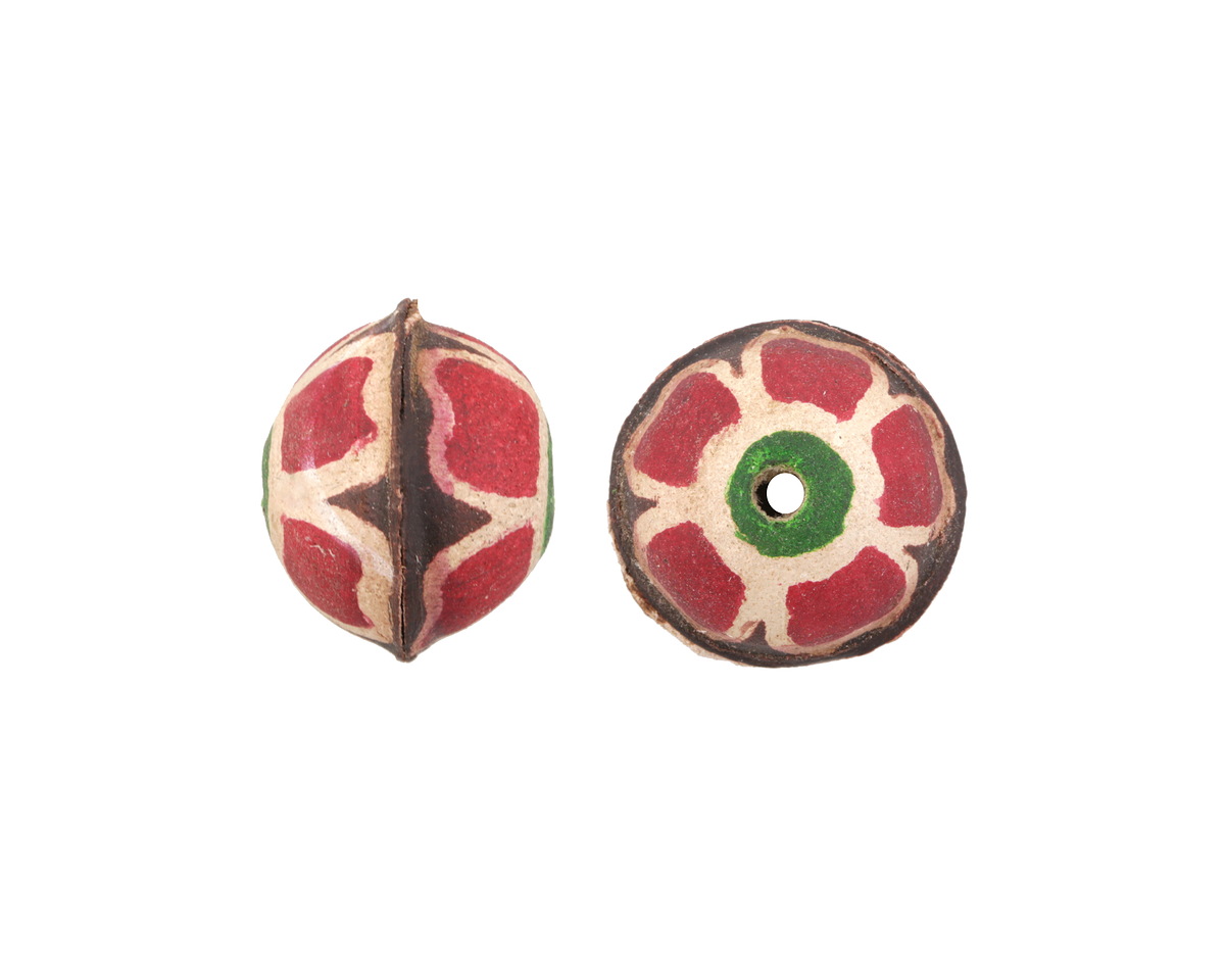 Add a cheerful pop of color to your creations with these vibrant, hand-painted leather beads. Lightweight with a generous hole size, they're ideal for stringing on leather cord, chunky key chains, macrame projects and more. Beads may vary slightly in size and pattern placement.