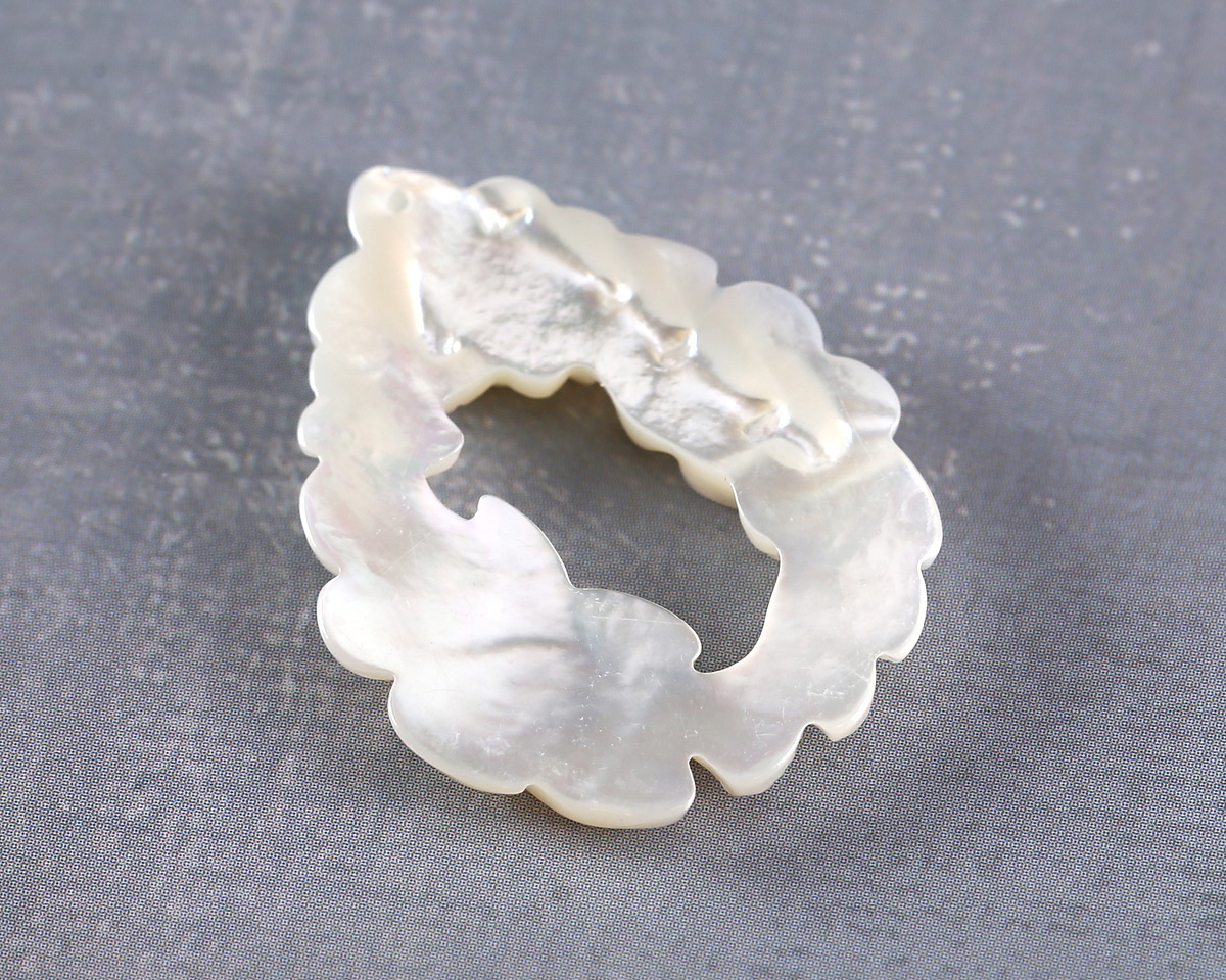 There is something truly magical about a carved Mother of Pearl focal. Teardrop bouquet wreath pendants feature beautiful floral detail with the characteristic shimmer & shine of Mother of Pearl. Utilize as necklace pendants or create event-ready earrings with these focals. Perfect for weddings or other special occasions. Please see additional images for examples of variance.