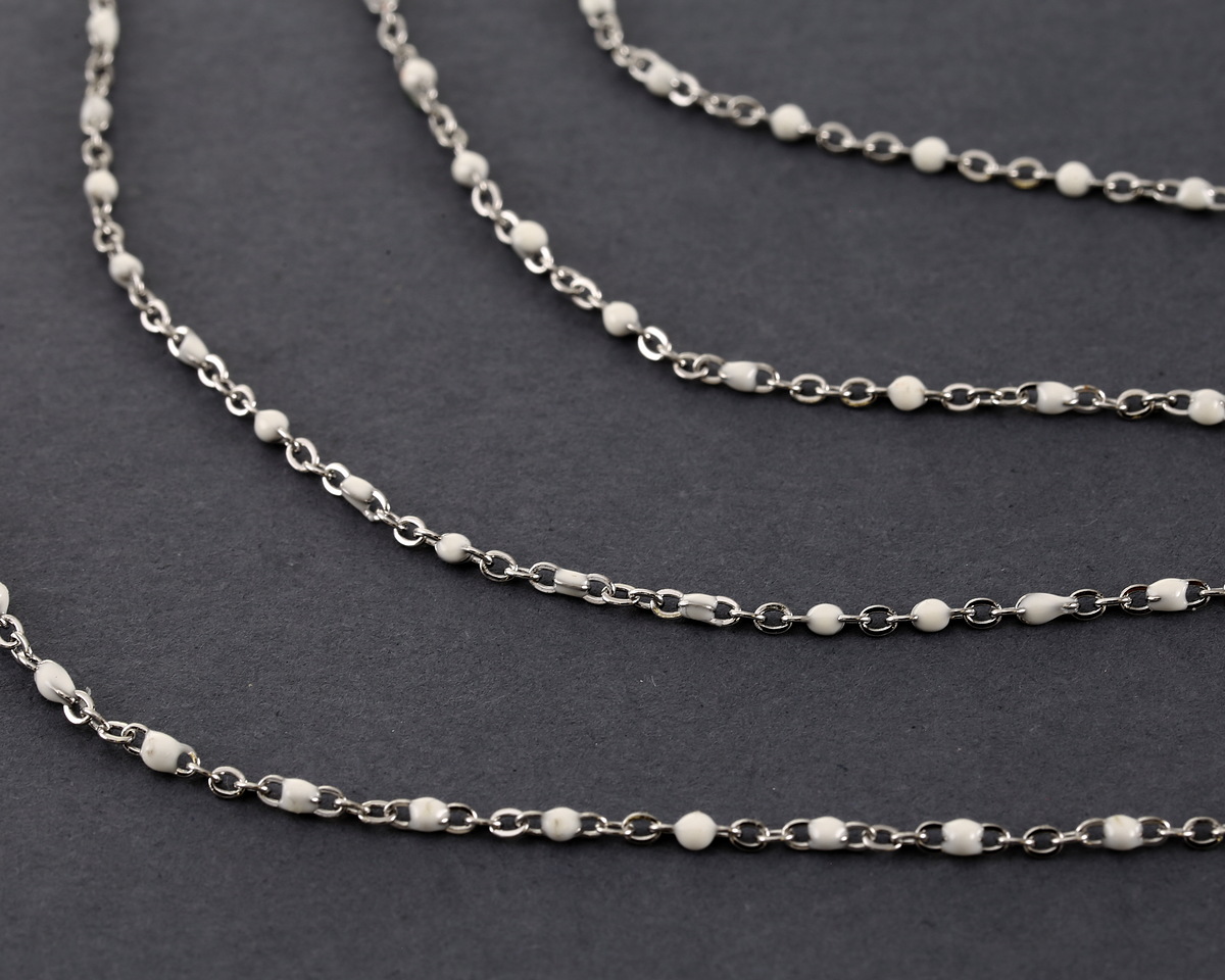Stainless steel chains are super-durable, hypoallergenic (and look great, too). Another reason we love stainless steel is that it won’t tarnish as quickly as other metals, and that means more wearing, and less cleaning. Shop more stainless steel components and findings.