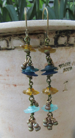 These cute little lucite flowers were just begging to be used in earrings. The TOHO Magatama seed beads worked out great for the center of the flowers as well as seed charms because of the organic shape and small size. The earrings are so lightweight too - you can get the long dangle look without pulling on your ears too much.