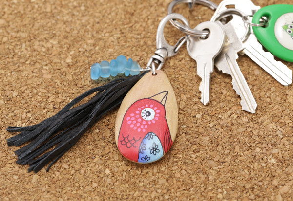 Designed by Andrea P. This wood pendant is from Lima's new artist Summer Wind Art. I thought I would make a whimsical keychain to display how versatile these wood pendants can be. I absolutely love the bright color combination.
