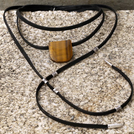 The subtle shimmer in this metallic jet microsuede is such a nice compliment to the striking pattern in tiger eye. I love the large hole pendants, and even though the hole size is 3mm, the 5mm flat cord fits very nicely through. This size cord works really well for a choker necklace.