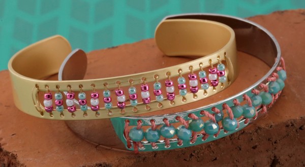 These weave-able bangles make it easy to create unique designs using thread & seed beads.