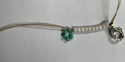 To make the daisy, bring the needle up to the first petal bead and poke it through- coming from the top- in the direction pointing away from the clasp.