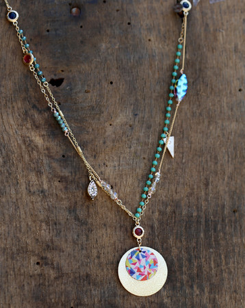 For this necklace, I used a few different types of chain, links, and charms to accentuate these fun, reversible printed coin focals.