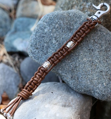 Fold two 3.5' pieces of cord and attach to a keyring- so there are 4 pieces of cord hanging down. When you fold & attach the cord, make sure that the two innermost pieces of cord are half the length of the outermost pieces of cord.