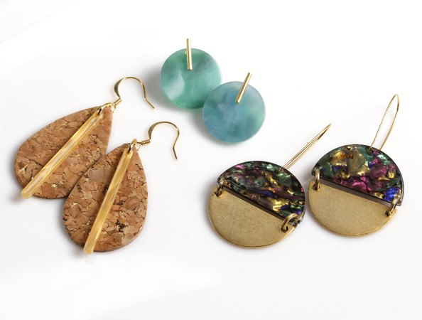 There are so many combinations you can try it acetate, it looks great paired with metal, cork, or gemstones. These are just a few examples, to jumpstart your creativity. Just link components together with jump rings or wire. I simply added ear posts to the coin acetate.