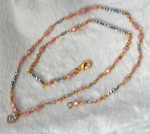 This necklace is made up of seed bead & Czech glass bead links, finished off with a tiny pavé charm. I love the soft, sparkling color palette & the ease of the design makes it a great gift idea!