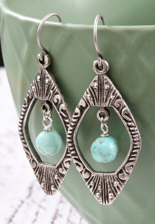 These earrings are simple, but definitely statement making! I love how the turquoise looks with the antique silver, and how the detail on the teardrop focal adds another layer of interest.