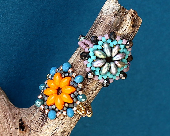 I love these intricate handwoven flowers and how they conform perfectly around my finger. This is a fun way to use them, plus you can easily make several and change them out to match your out of the day;) They are made with high quality Miyuki seed beads and strong Japanese One-G thread, these focal links are flexible yet durable, Yay!