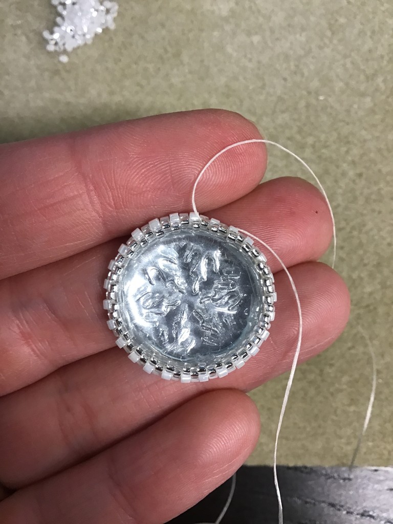 I created a woven bezel using peyote stitch to showcase our new line of fabulous snowflake cabochons. Some experience with peyote stitch helps, but this project is suitable for beginner bead weavers as well! Note: I keep high tension throughout this whole design to ensure a snug fit around the cab.