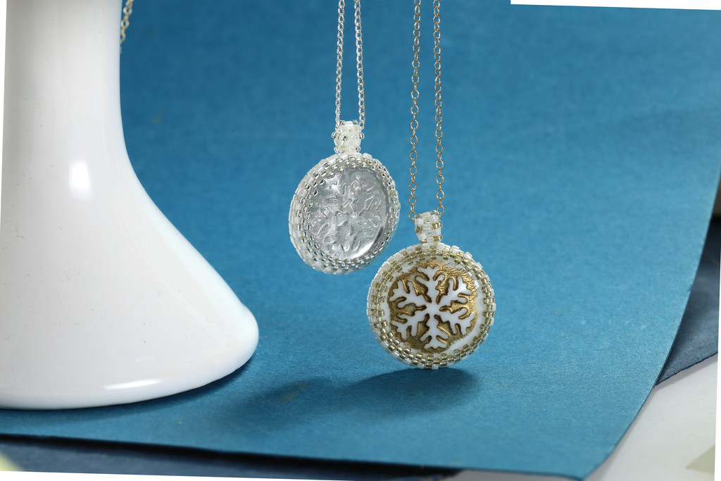 1 Snowflake Cabochon 11/0 Miyuki Delica Seed Beads - color of your choice 15/0 TOHO Seed Beads - color of your choice C-lon Size D thread 1 John James Size 10 Ball Point Bead Embroidery Needle 18" Finished Chain Bead Mat