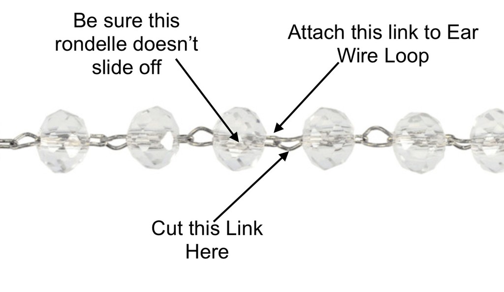 Open the ear wire loop and slide the cut chain pieces onto it. Close the loop and wear!