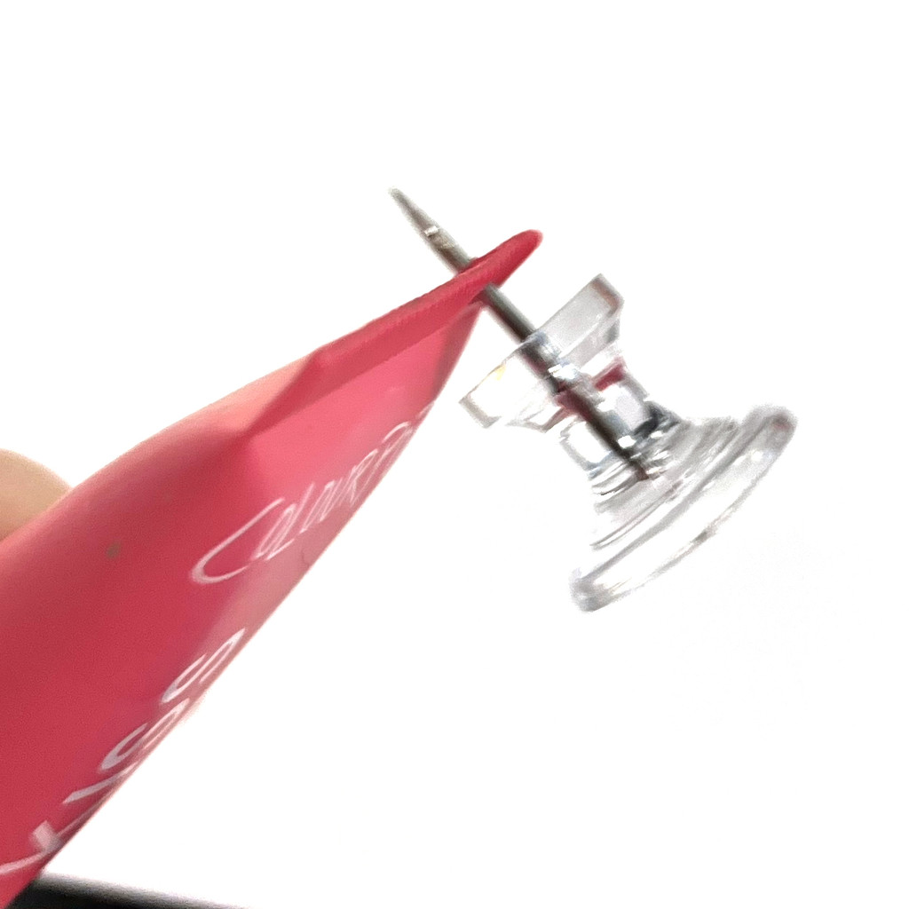 You will need one 3" piece of chain and a 2" piece of chain. Take a tac or leather needle and poke a hole into the top of the lip gloss tube. Be sure to only poke the hole into the part where the tube is pressed together.