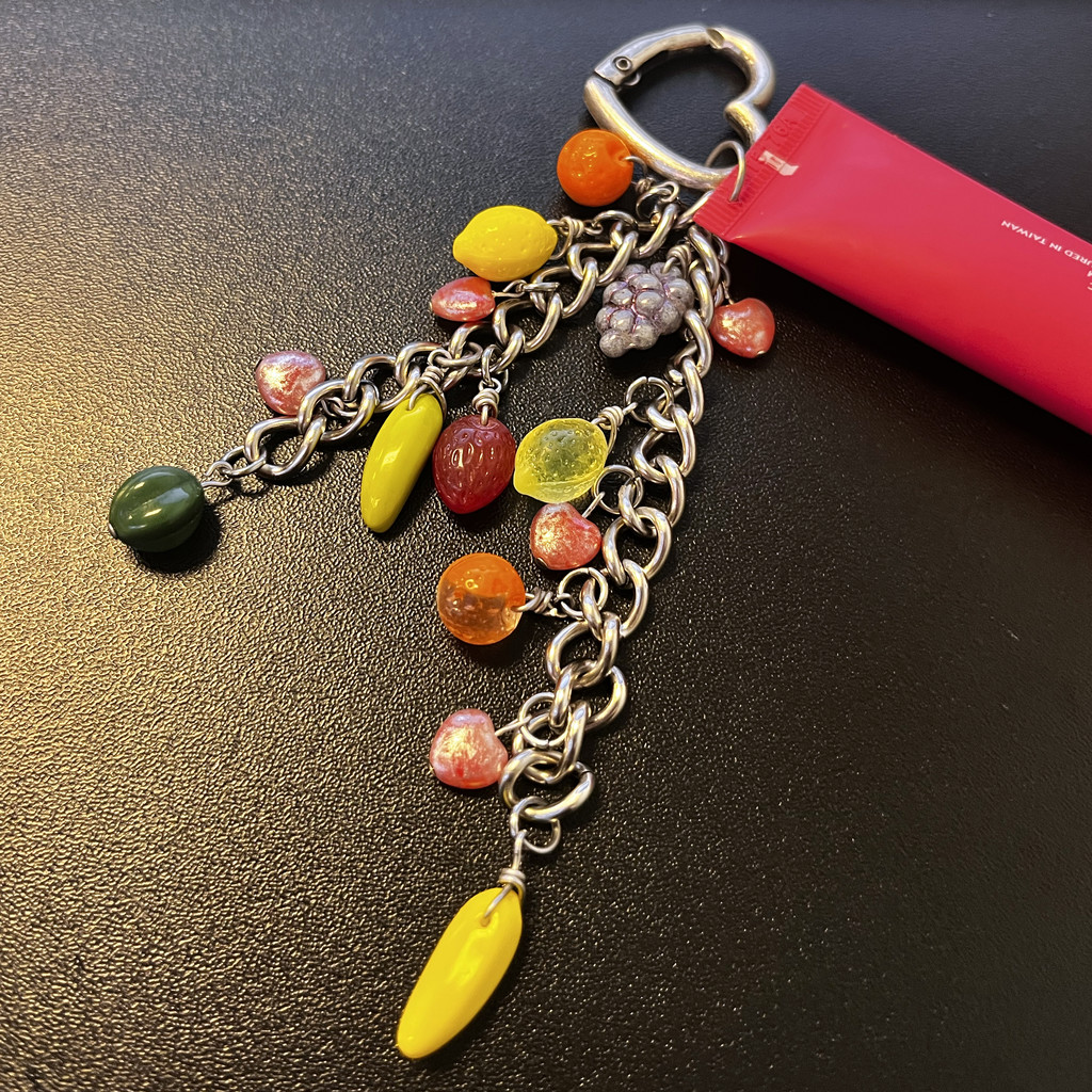 Add a fruity twist to decorate your lbag. This is a great way to embellish lip gloss tubes for gifts and always have it on hand by hooking it to your bag.