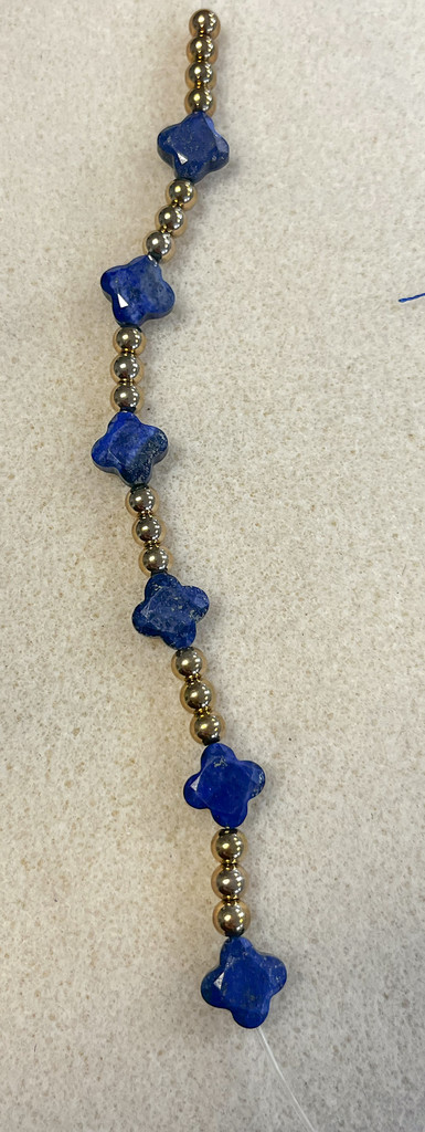 For the earrings, slide a quatrefoil bead onto a headpin. Create a loop at the top using round-nose pliers or a looper tool. Attach the bad charm to the hinged hoop.