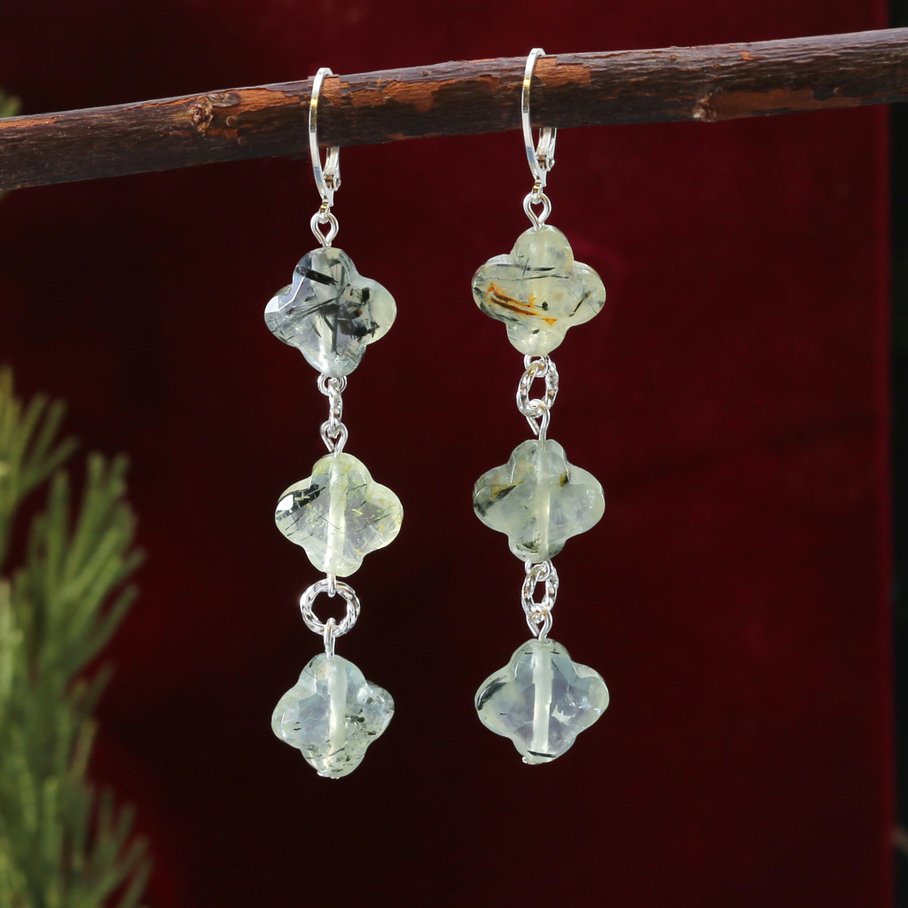 Create two bead charms using headpins. Slide a quatrefoil bead onto a head pin and create a loop at the top.