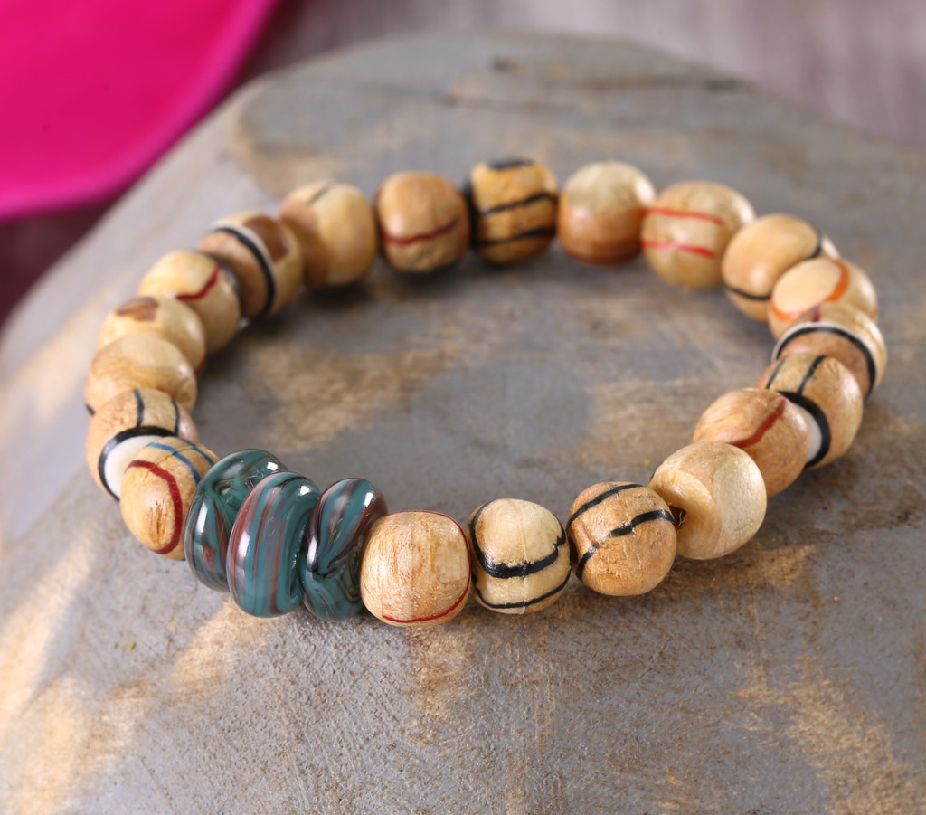 Wood beads made from tennis rackets have a beloved retro vibe. This is a simple bracelet to make perfect for gifting.