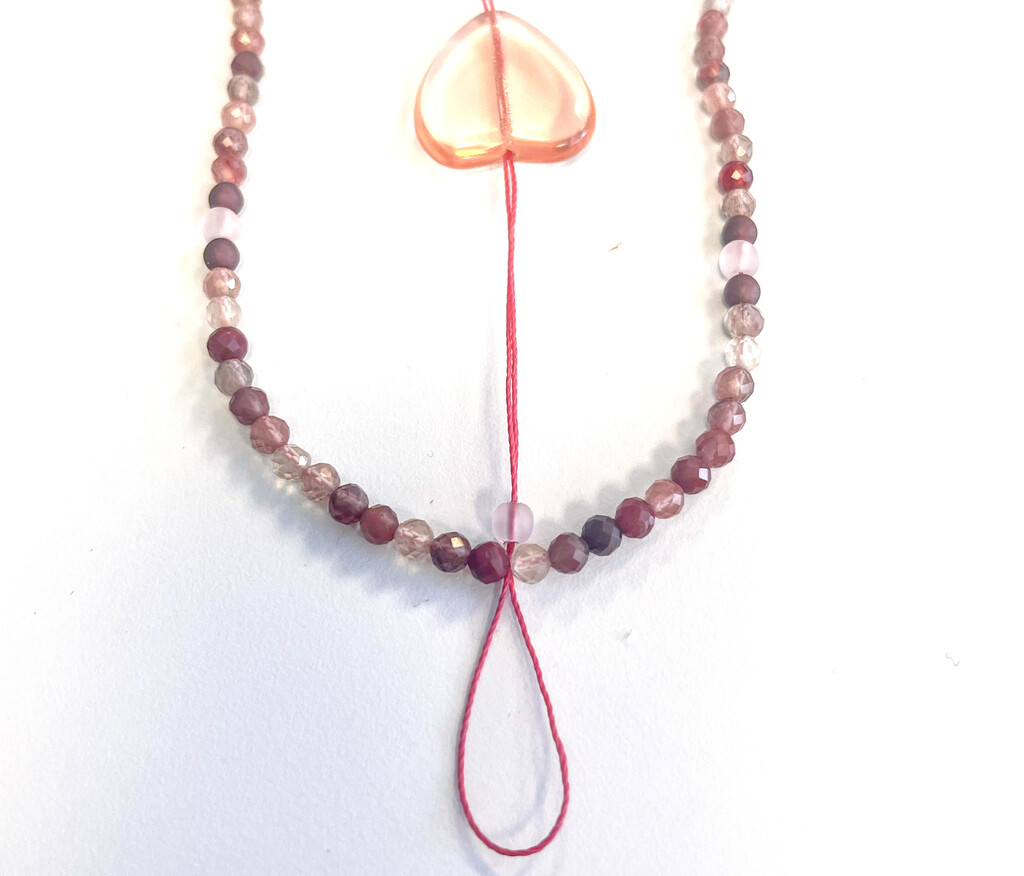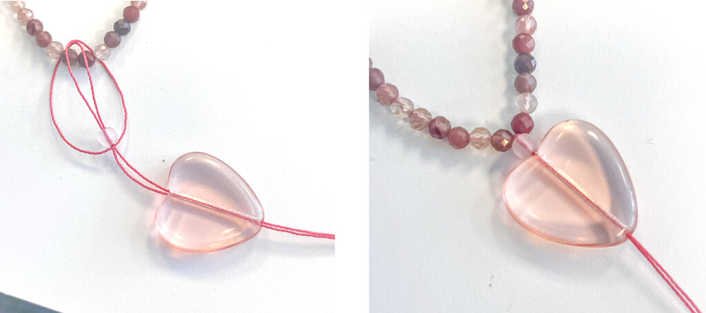 Flip the heart towards the back of the necklace. The loop should be placed in the center of the necklace under the beads.