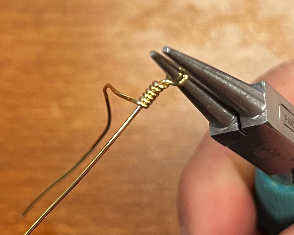 Cut 10" of wire. Create a loop about 4" down from the end of the wire. Wrap the short wire tail around the base of the loop 8 times. Trim the wire.